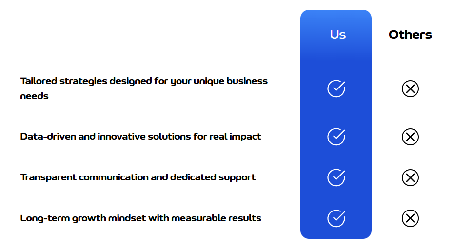 | Tailored strategies designed for your unique business needs | ||